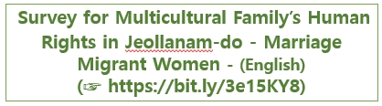 참여 공간 전라남도 다문화가정 인권실태조사(결혼이주여성) 2021. 3. 3. 08:59 공유하기 게시글 관리 I&I RESEARCH 저작자표시 비영리 변경금지 (새창열림) '참여 공간' 카테고리의 다른 글 2025 해외 생물자원 이용 및 ABS 제도 이행 실태조사 (0) 2025.06.09 '참여 공간' Related Articles 2025 해외 생물자원 이용 및 ABS 제도 이행 실태조사